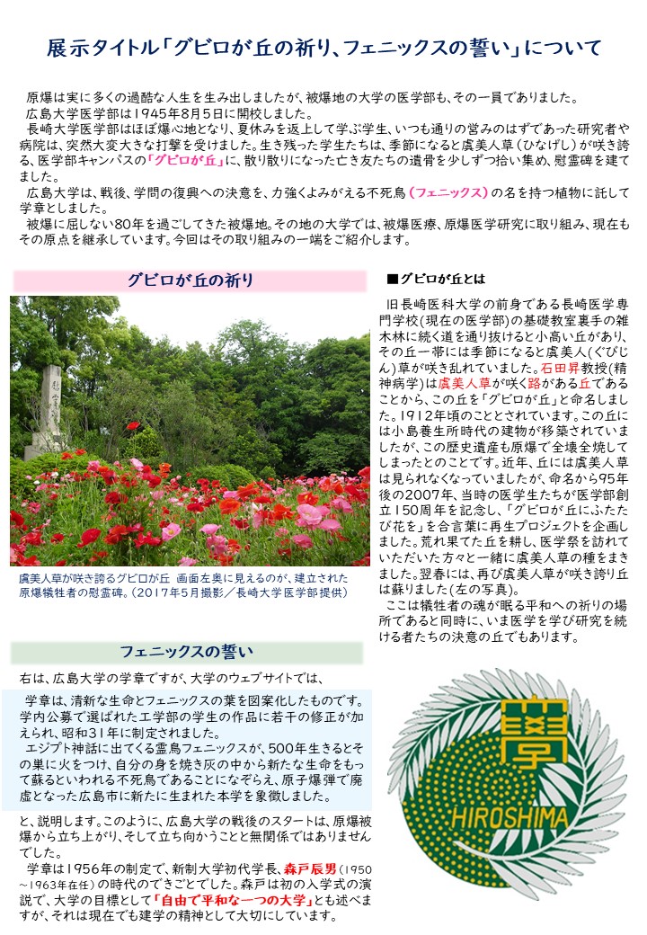 本展示は、長崎大学医学部原爆復興80周年記念事業との共同開催により、長崎医科大学の被災に関する写真と資料を一緒にご覧いただきました。多くの皆さまにおいでいただきありがとうございました。
