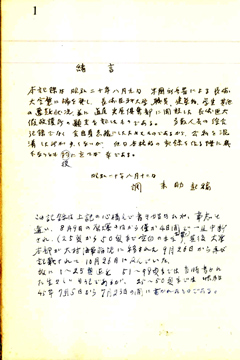 | 泰山弘道の著書「長崎原爆の記録」の英語版原稿の写しである。タイトルは“THE RECOLLECTION OF ATOMIC BOMBBARDMENT ON NAGASAKI”、1955(年)と記されている。 |