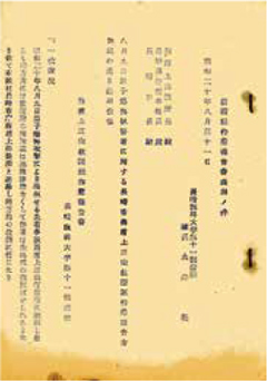 | 昭和24年7月12日に新興善医院に於いて行われた長崎大学医学部救護班編成に関する会議の議事録である。 |