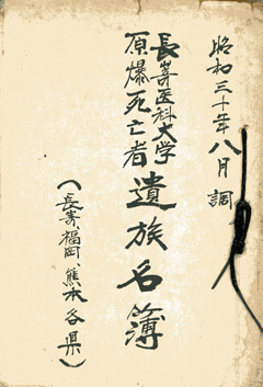 | 調 来助博士を中心とする教官と医学生により、被爆直後の1945年10月から12月までの3か月間に原爆の人体への影響が調査された。5778人の被災者に対して60項目にわたる聞き取り、被爆場所や症状などについて記録された。全26冊。この調査をもとに「長崎に於ける原子爆弾傷害の統計的観察」としてまとめられた。 |