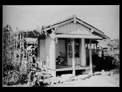 左端から永井隆、長女 茅乃、義母、3人の男性は永井と共に救護活動にあたった施兄弟 |