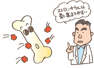 ストロンチウムはカルシウムに似た性質があり、放射性ストロンチウムが体内に取り込まれると、骨に集まりやすいことが知られています。その性質を利用して、放射性ストロンチウムは、がん患者の多発性の骨転移による痛みを和らげる治療薬として用いられることがあります。