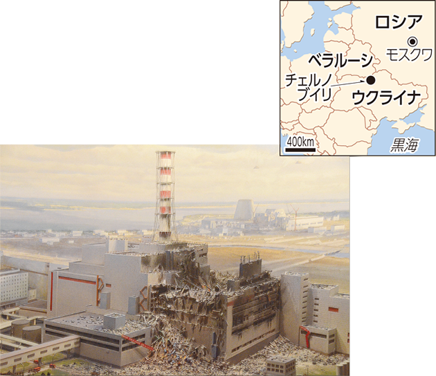 | 事故当時と現在のチェルノブイリ原子力発電所 | |