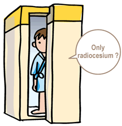 A whole body counter measures the concentration of substances inside the body, and then uses those values as the basis for calculating the total amount of radiation present.