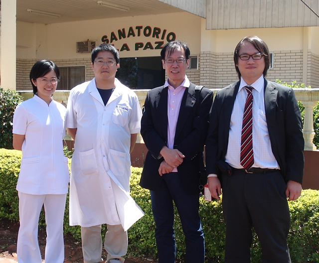 パラグアイの日系診療所前で記念撮影をしました。