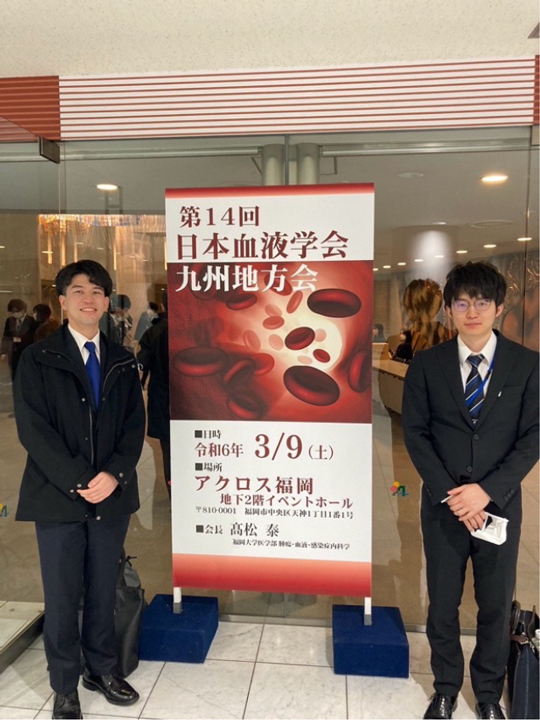 第14回日本血液学会九州地方会が福岡で開催されました。当科や関連施設の医師が参加し発表を行いました。お疲れ様でした。